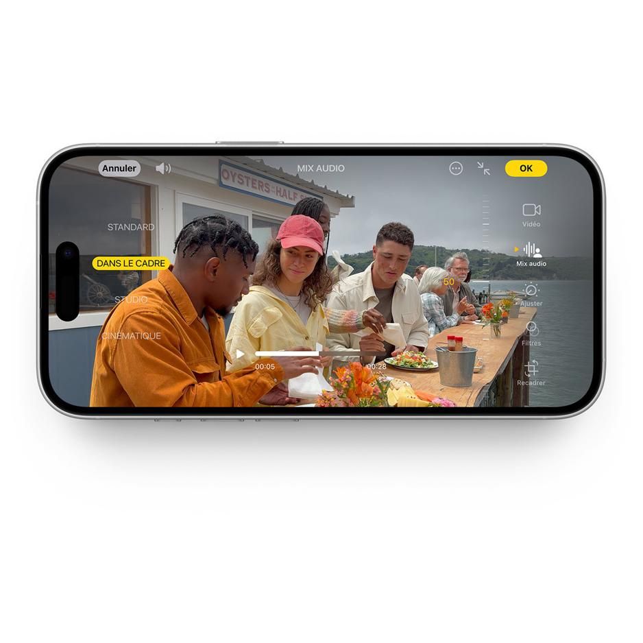 Découvrez la puce A18. Une puce conçue sur mesure avec deux générations d'avance sur la puce A16 Bionic de l'iPhone 15. Sa puissance offre à la caméra des fonctionnalités avancées, comme les Styles photographiques et Commande de l'appareil photo. Et grâce à son exceptionnelle efficacité énergétique, l'autonomie est encore prolongée.