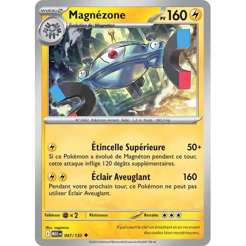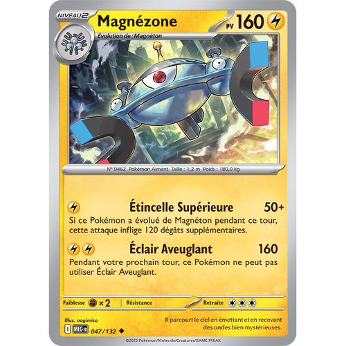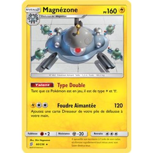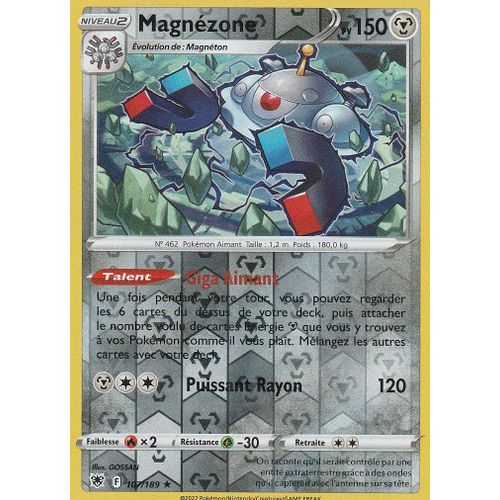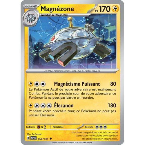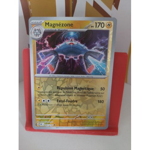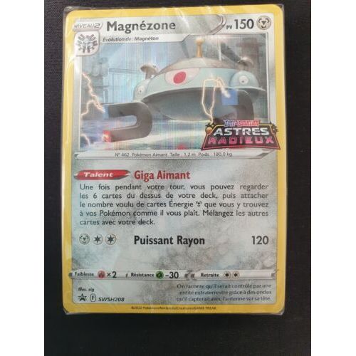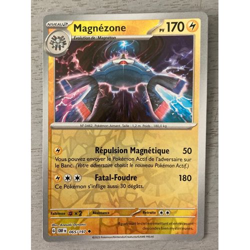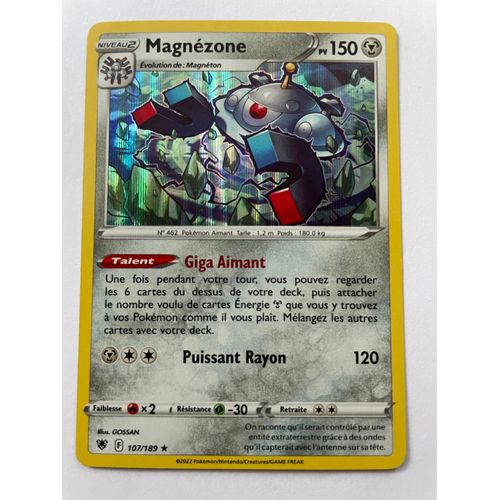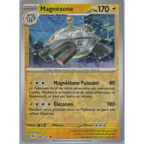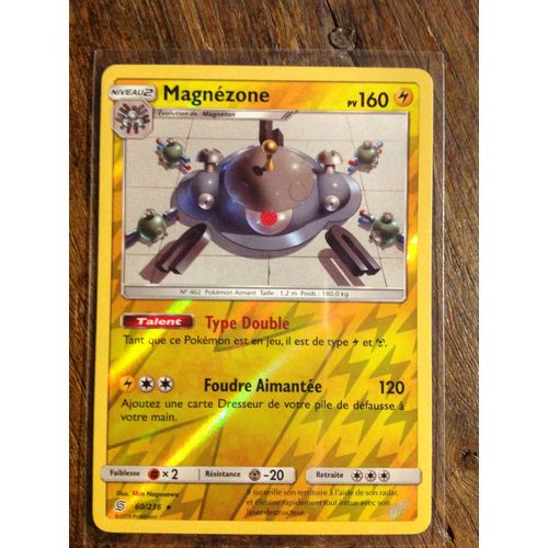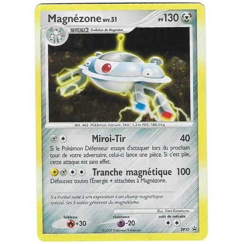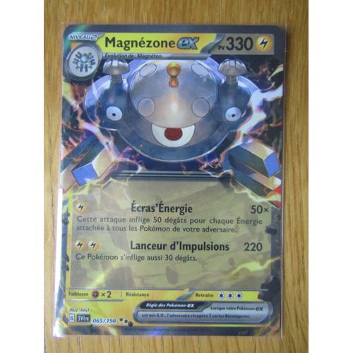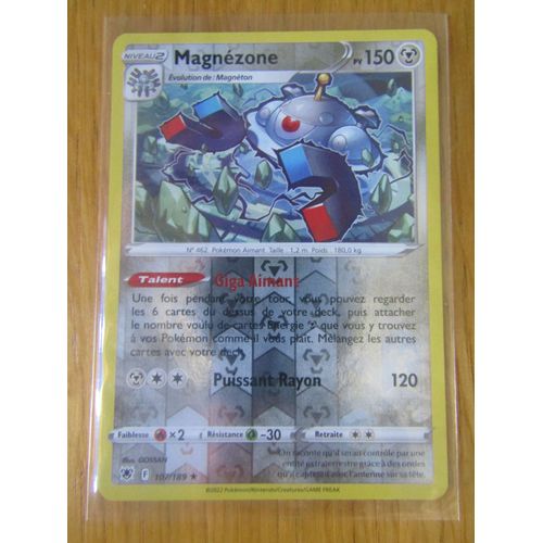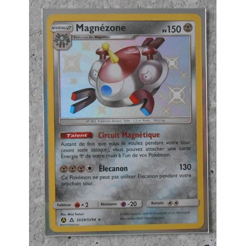 Exclusif et fascinant, Rakuten met en lumière une large sélection de ces cartes, que vous soyez intéressé par des articles flambant neufs ou par des pièces de collection d'occasion. Magnezone, le Pokémon évolution du bien-connu Magneton, est un attrait indéniable pour les collectionneurs et les joueurs du monde entier. Avec son type Acier/Électrique et son allure futuriste, cette carte génère un réel engouement. Son unique capacité 'Magnet Pull', capable d'empêcher les Pokémon Acier adverses de s'échapper, et son attaque 'Thunder Blast' délivrant jusqu'à 130 points de dégâts, positionnent Magnezone comme un rival redoutable dans les duels Pokémon. Sur Rakuten, nous nous engageons à vous fournir un accès sans égal à une multitude de cartes Magnezone. Que vous soyez un joueur passionné souhaitant améliorer votre jeu, ou un collectionneur cherchant à compléter votre collection, vous découvrirez sans aucun doute des pièces qui captent votre intérêt. Bien entendu, notre sélection ne se limite pas à un seul modèle. Au contraire, vous trouverez différentes versions de la carte Magnezone, chacune avec ses propres capacités et illustrations, offrant une diversité qui vous permettra d'optimiser votre stratégie de jeu ou de collection. En tant que leader du marché E-commerce, Rakuten se distingue par son engagement envers la satisfaction du client. Dans ce contexte, nous valorisons l'authenticité, la qualité, et la diversité de notre inventaire. Vous apprécierez sans aucun doute de pouvoir choisir entre des cartes neuves, pour le plaisir de posséder un article immaculé, ou des cartes d'occasion, qui portent en elles le charme et l'histoire de nombreuses batailles Pokémon.