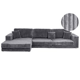 Canapé D'angle 4-5 Places Méridienne Gauche Velours Côtelé Gris Anthracite Galway