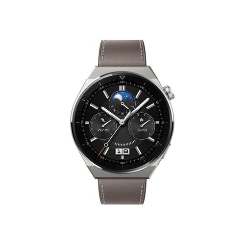 La Huawei Watch GT 3 Pro se distingue par son esthétique raffinée et ses matériaux premium. Elle propose deux versions : titane (boîtier 46,6 mm) ou céramique (modèle 42,9 mm), avec un design soigné intégrant verre saphir, boîtier robuste et fin. Son écran AMOLED circulaire affiche une résolution de 466 × 466 pixels, assurant des détails nets et une bonne visibilité en plein jour. Elle est aussi étanche jusqu'à 50 mètres (5 ATM), ce qui permet de porter la montre pour la natation ou sous la pluie sans souci.
