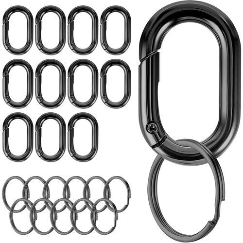 ASFASFq-Lot de 12 mousquetons noirs et 12 anneaux porte-clés - Mousquetons à clés - Petits mousquetons - Pour porte-clés, accessoires de camping, portefeuilles, pièces de rechange