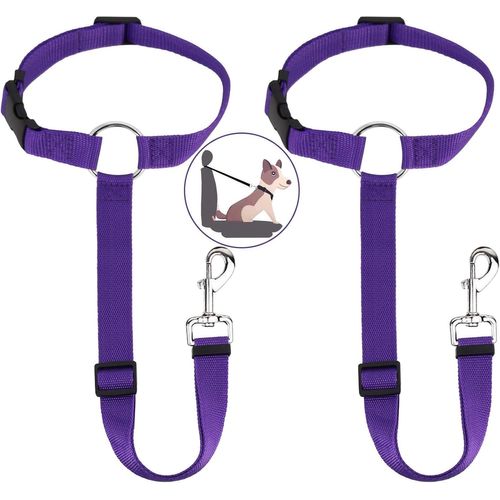 Lot de 2 ceintures de sécurité universelles pour siège arrière, harnais de voiture réglable et durable avec mousqueton, ceinture de sécurité pour chien et chat, violet