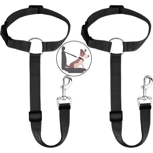 Lot de 2 ceintures de sécurité universelles pour siège arrière, harnais de voiture réglable et durable pour chien et chat avec mousqueton, ceinture de sécurité pour chien et chat, noir