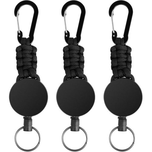 3 PCS Porte-clés Extensibles Porte Badge Mousqueton Porte Badge Rétractable avec corde Fil d'Acier de 60 cm et Mousqueton Porte Badge Durable Adapte¿ pour Enseignants Médecins Infirmiers (Noir)