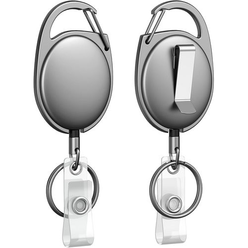 TIANYI-2 Pcs Enrouleur de Badge Rétractable Métal pour Porte-Badge Porte-Clés Rétractable en Métal Boîtier en Métal avec Ressort Acier Inox 55 cm Corde en Nylon Mousqueton Clip Ceinture Anneau Clé