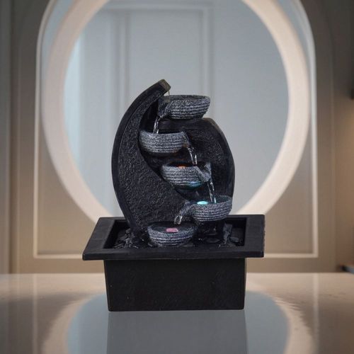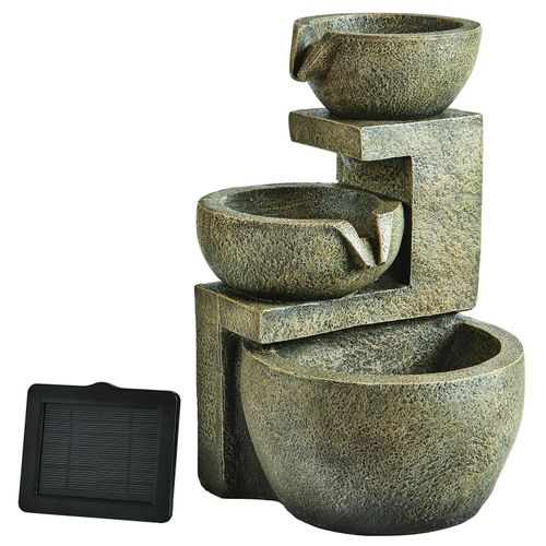Fontaine De Jardin Alimentée Énergie Solaire Ornement De Jardin Extérieur Décor Patio Résine Gris Sphère Autoportante À 4 Niveaux De Bols Renversants Jeu D'eau