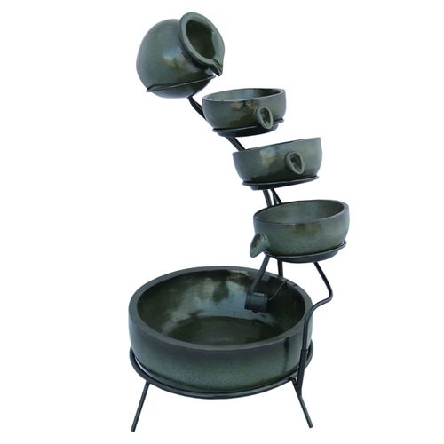 Fontaine De Jardin Alimentée Énergie Solaire Ornement De Jardin Extérieur Décor Patio Résine Vert Sphère Autoportante À 4 Niveaux De Bols Renversants Jeu D'eau