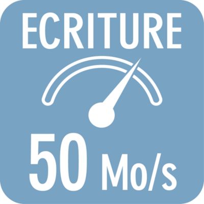 - Vitesse d'écriture : 50 Mo/s