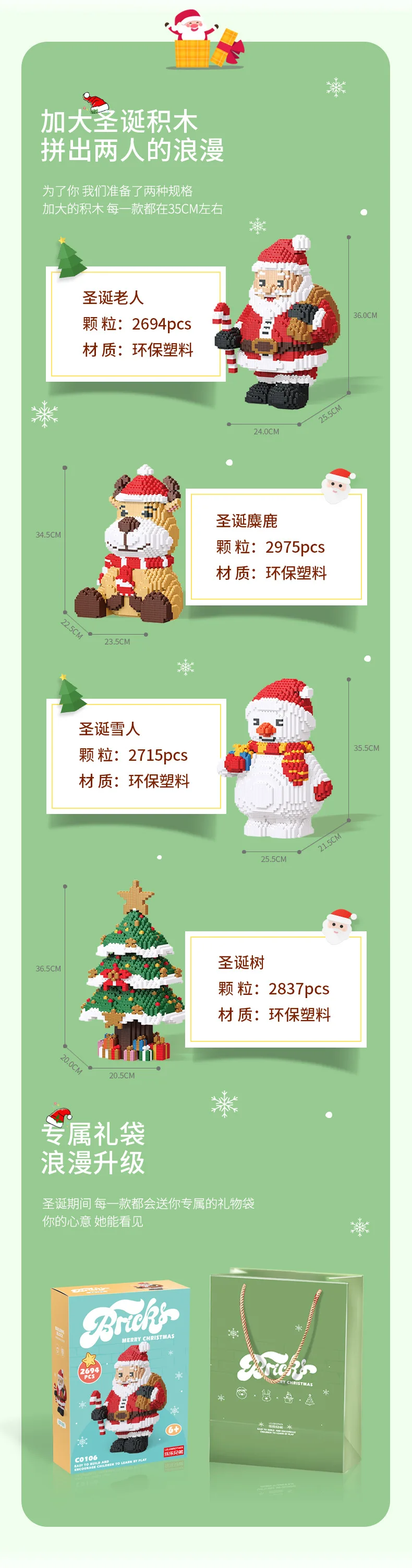 L - Petite taille C0105 - CHN Jouets décennie s De Construction Cadeau Grand Noël Joyeux Arbre Père Noël Ornemental Granule DIY Enfants Festival Anniversaire Petite taille C0105