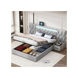 Avis sur Élégant Lit Capitonné 160x200 Avec Grand Dossier, Lit En Velours Avec Led Et Prises Usb, Lit Classique En Gris - Lit Autre