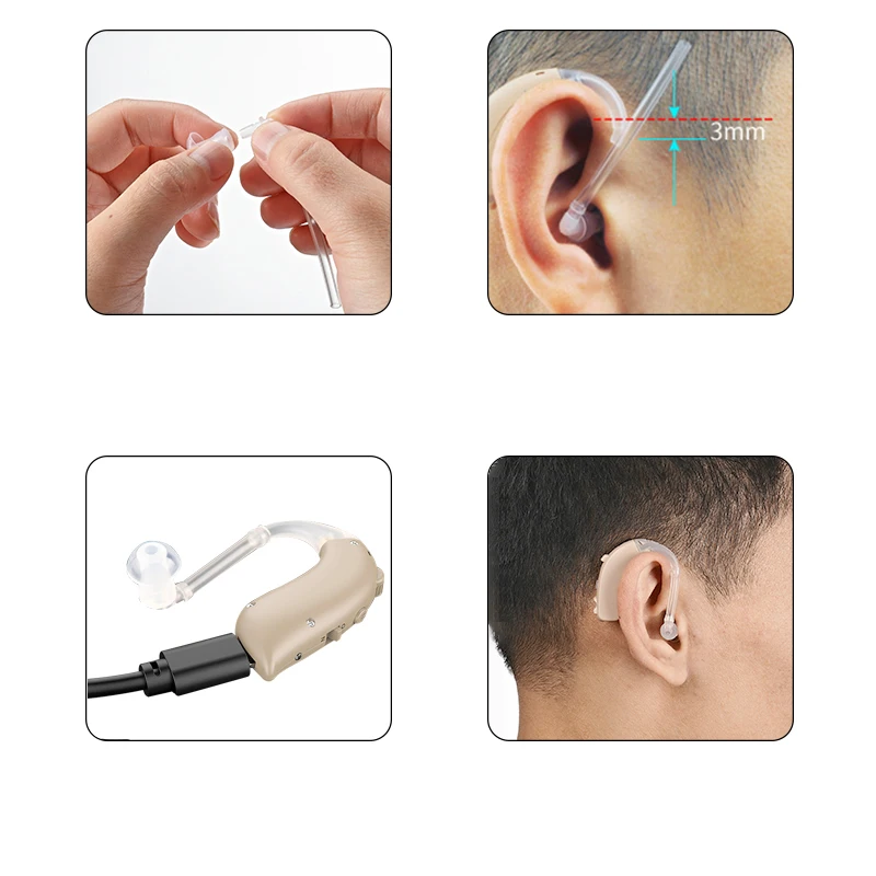Bleu - EU Plug - Prothèse auditive Rechargeable BTE, appareil auditif à longueur réglable, amplificateur auditif pour personnes âgées