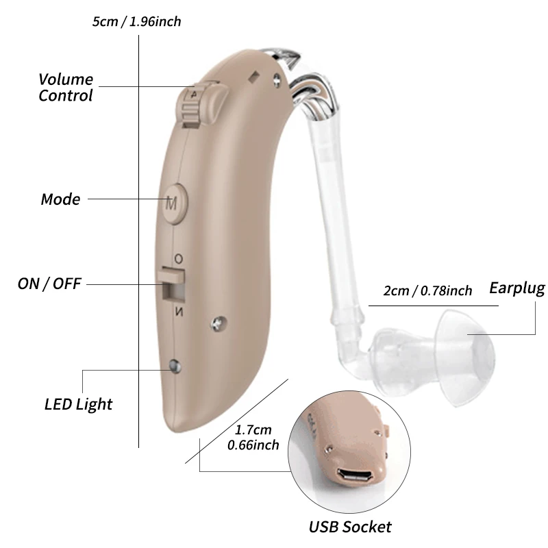 Bleu - EU Plug - Prothèse auditive Rechargeable BTE, appareil auditif à longueur réglable, amplificateur auditif pour personnes âgées Bleu - EU Plug