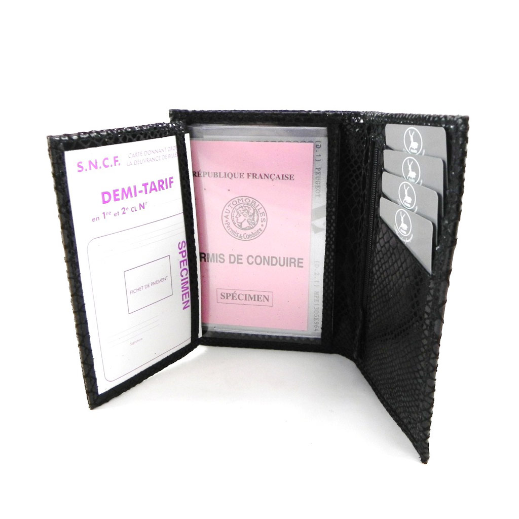 Présentation Portefeuille Cuir 'frandi' Noir (Motif Python)
