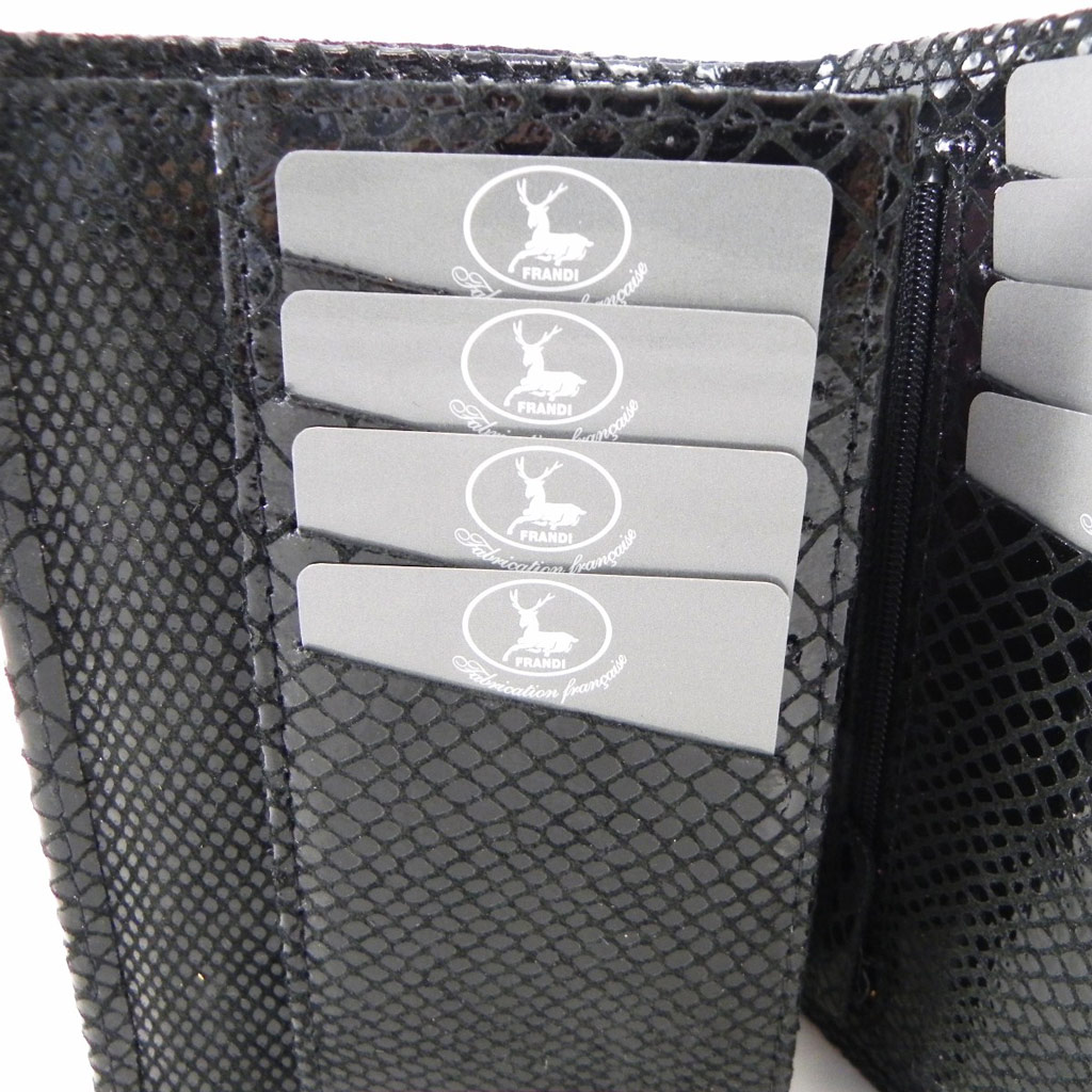 Portefeuille Cuir 'Frandi' noir (motif python) - Frandi
