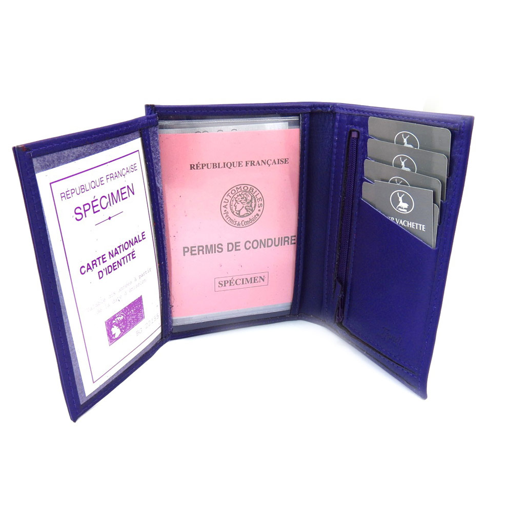 Portefeuille Cuir 'Frandi' bleu 2 tons (cartes +)