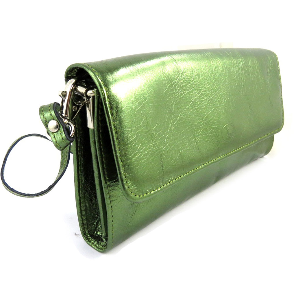 Présentation Sac Pochette Cuir 'frandi' Vert (2 Soufflets)