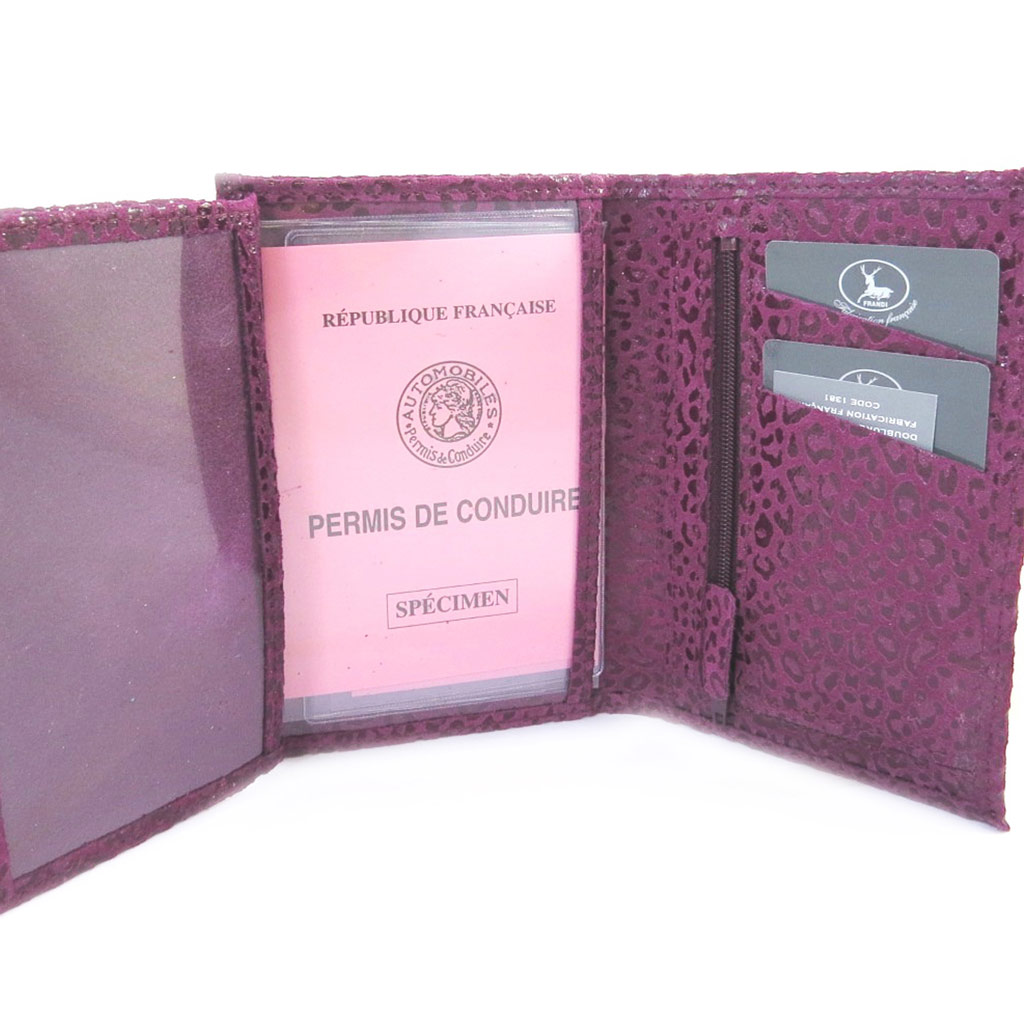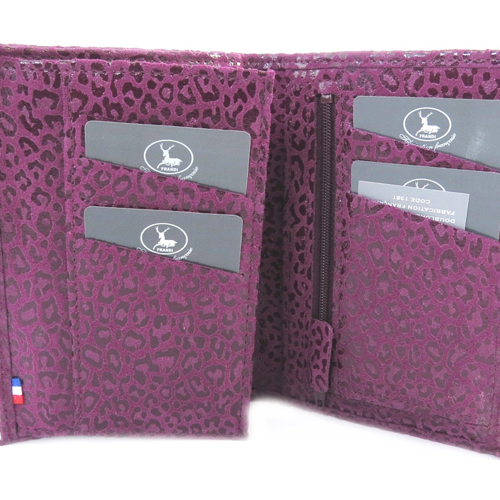 Portefeuille Cuir 'Frandi' violet (léopard) - Frandi
