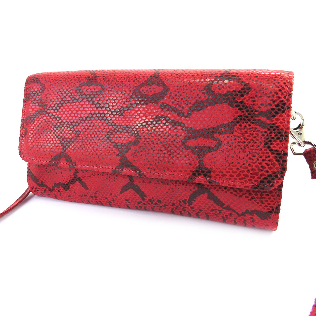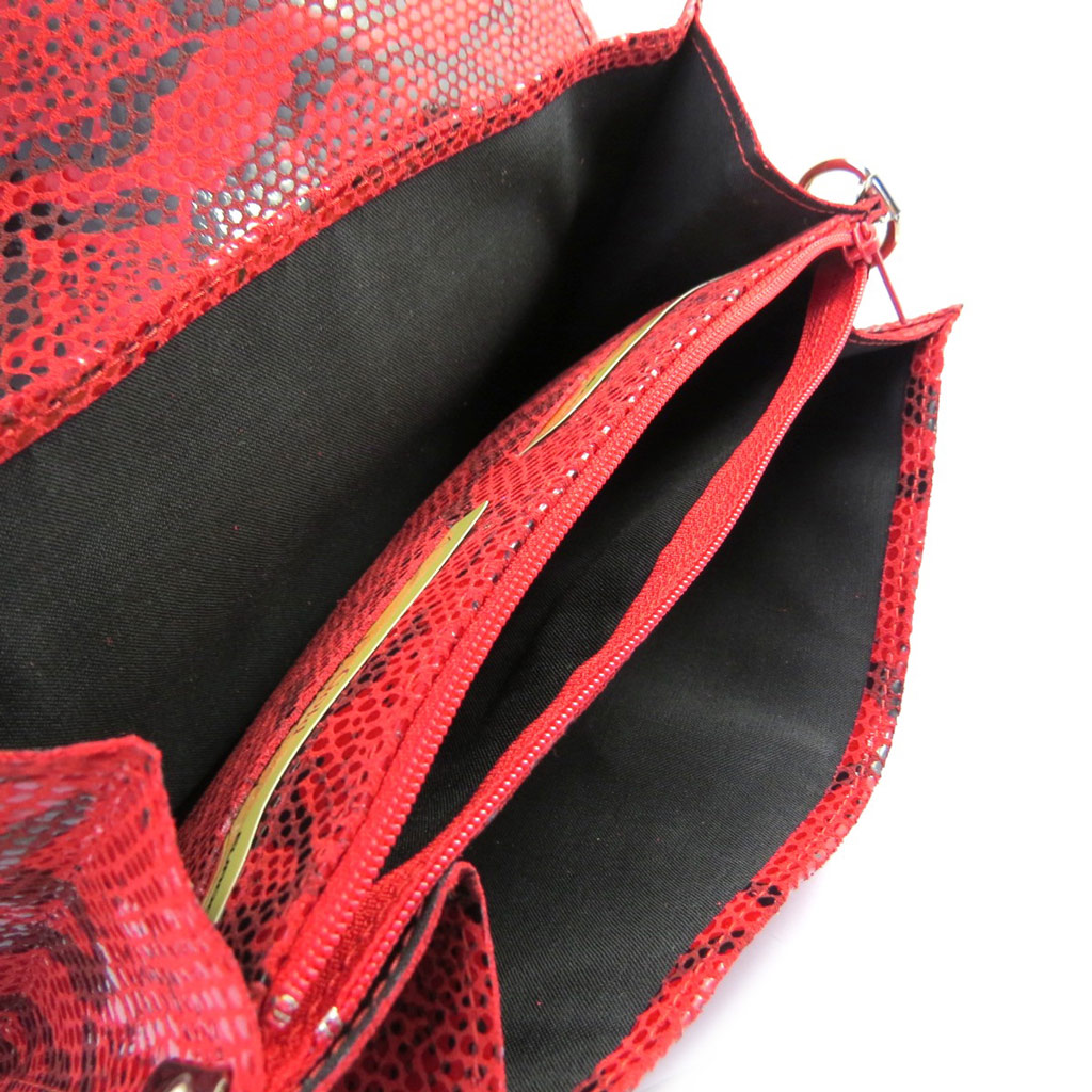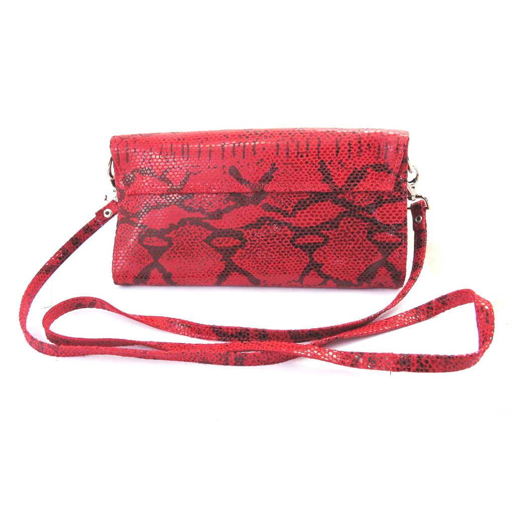 Sac pochette cuir 'Frandi' rouge (motif python) (2 soufflets) - Frandi
