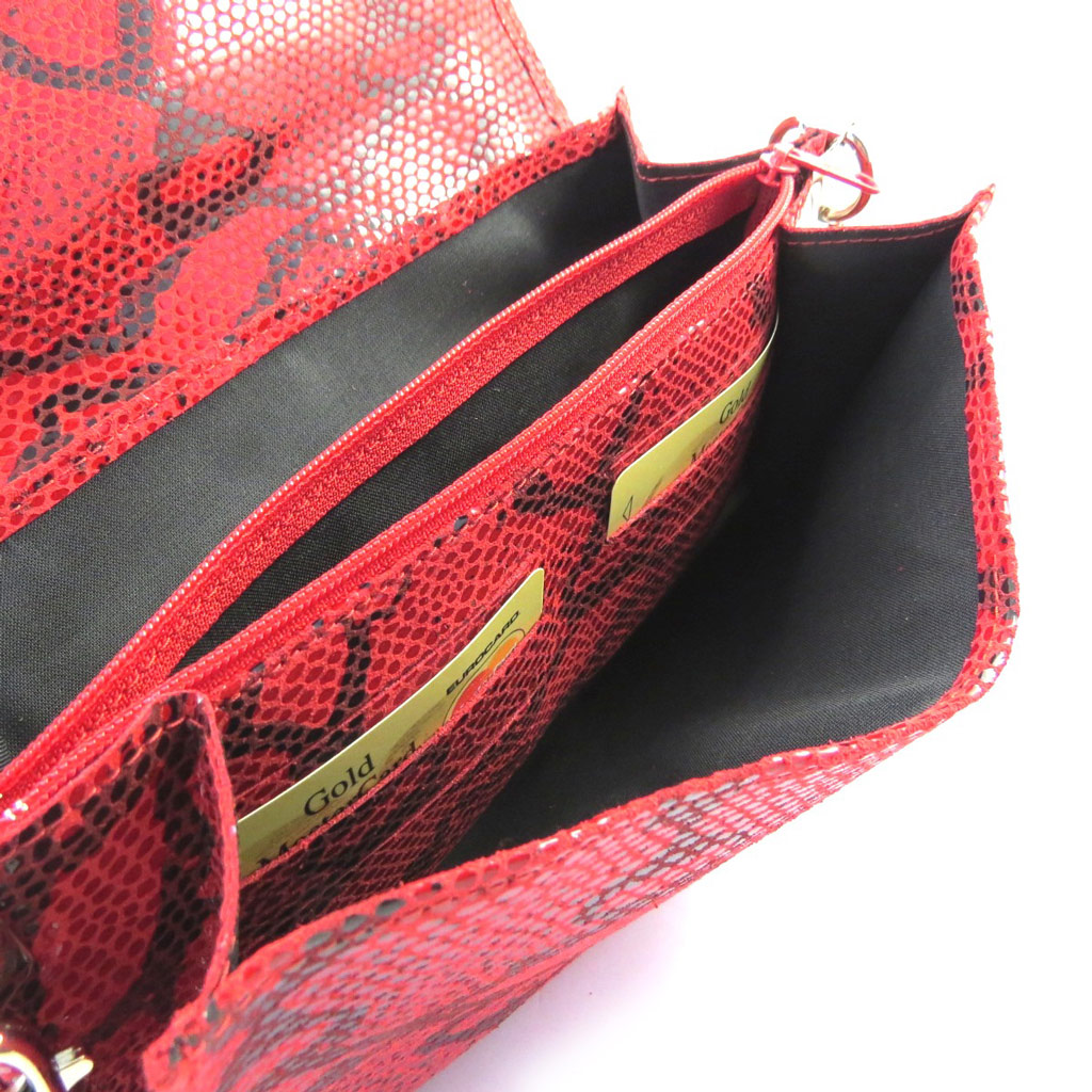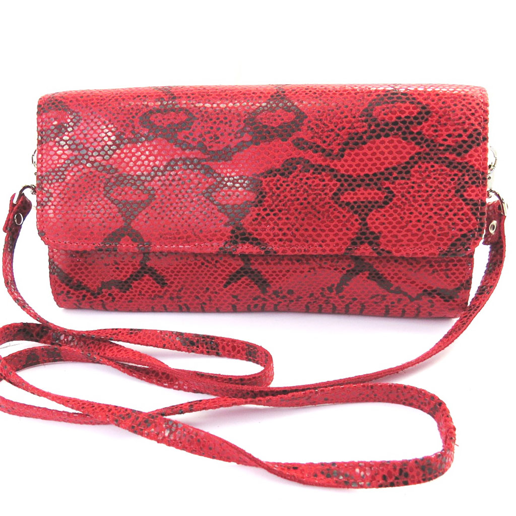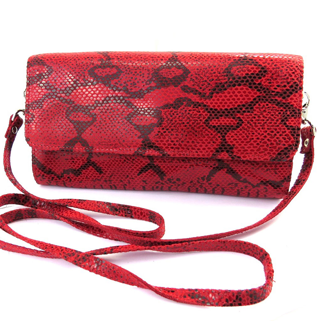 Sac pochette cuir 'Frandi' rouge (motif python) (2 soufflets) - Frandi