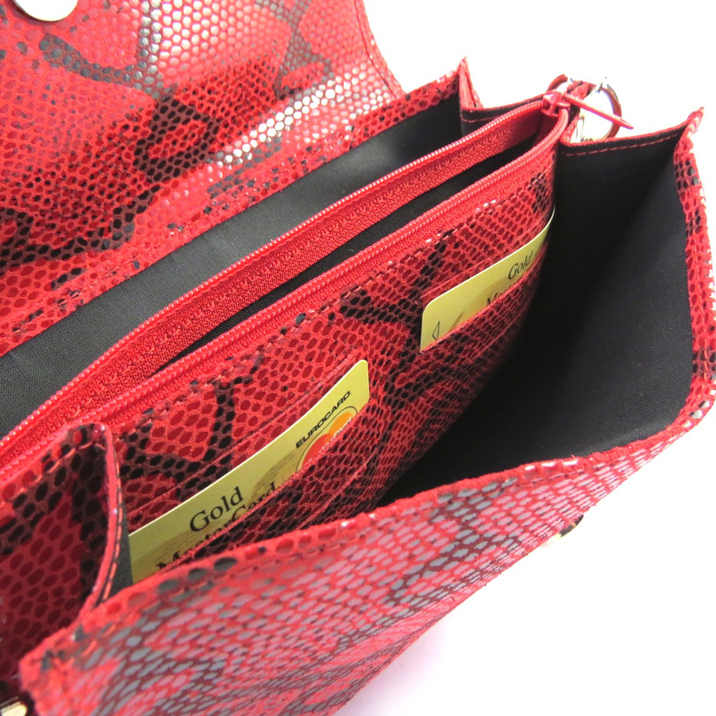 Présentation Sac Pochette Cuir 'frandi' Rouge (Motif Python) (2 Soufflets)