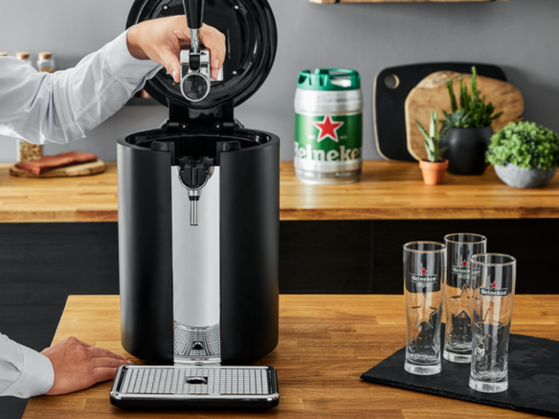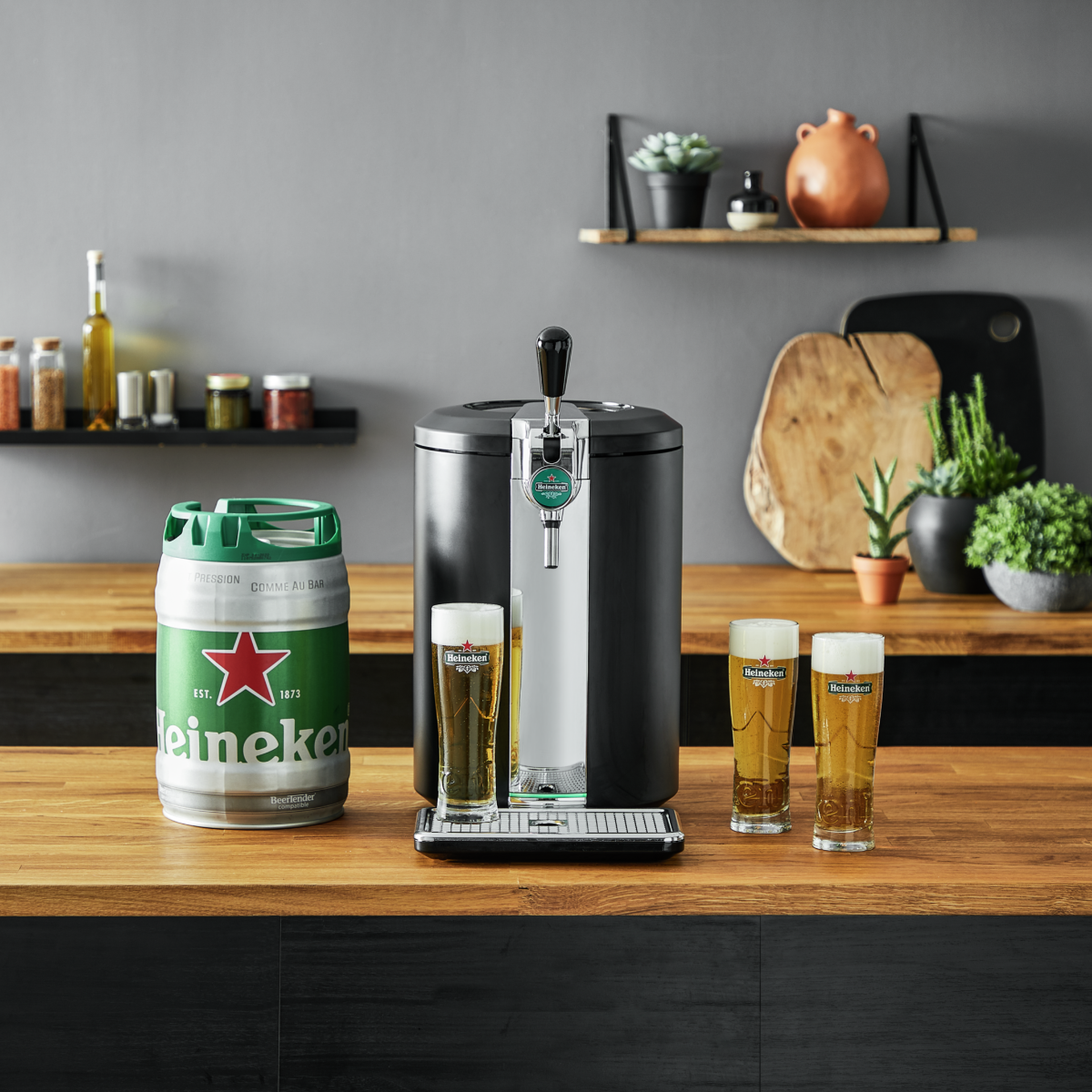 Savourez de nombreuses marques de bières pression différentes du groupe Heineken en fûts de 5 L.**La disponibilité varie en fonction du pays