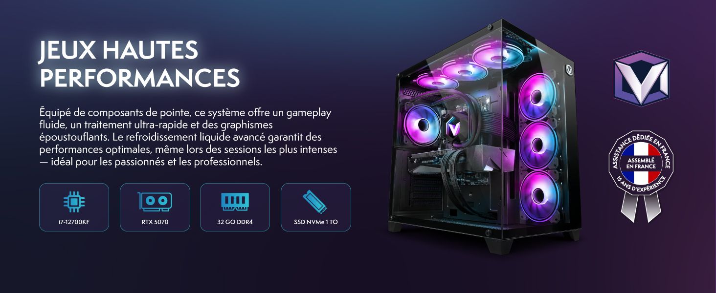 Vibox PC Gamer - Intel Core i7 12700KF 5,0 GHz - RTX 5070 12 Go - 32 Go RAM - 1 To NVMe - Windows 11 - WiFi