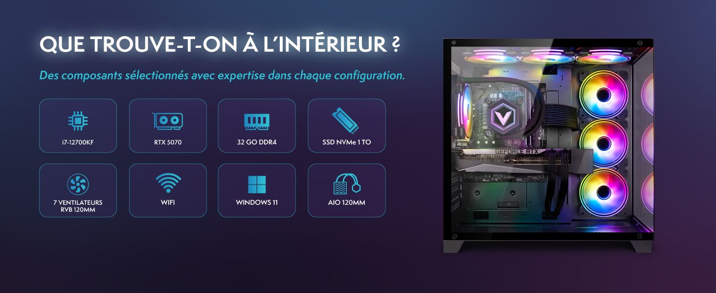 Vibox PC Gamer - i7 12700KF 5,0 GHz - RTX 5070 12 Go - 32 Go RAM - 1 To NVMe - Windows 11 - WiFi