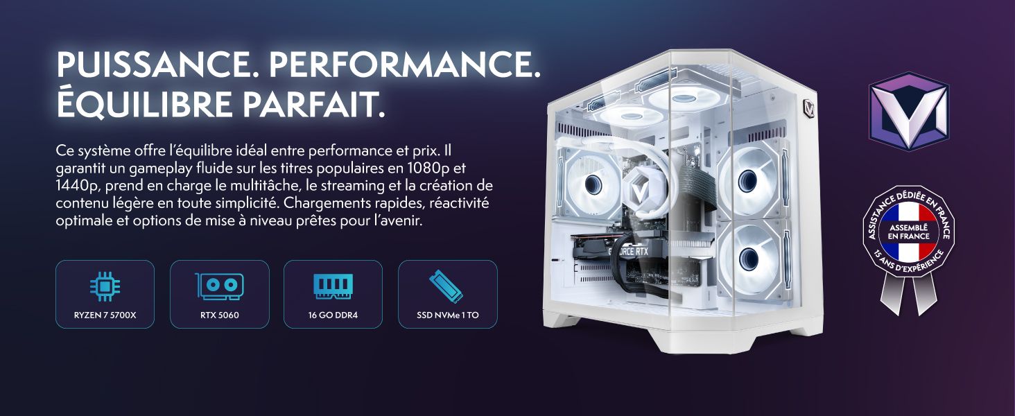 Vibox PC Gamer - Ryzen 7 5700X 4,6 GHz - RTX 5060 8 Go - 16 Go RAM - 1 To SSD - Windows 11 - WiFi