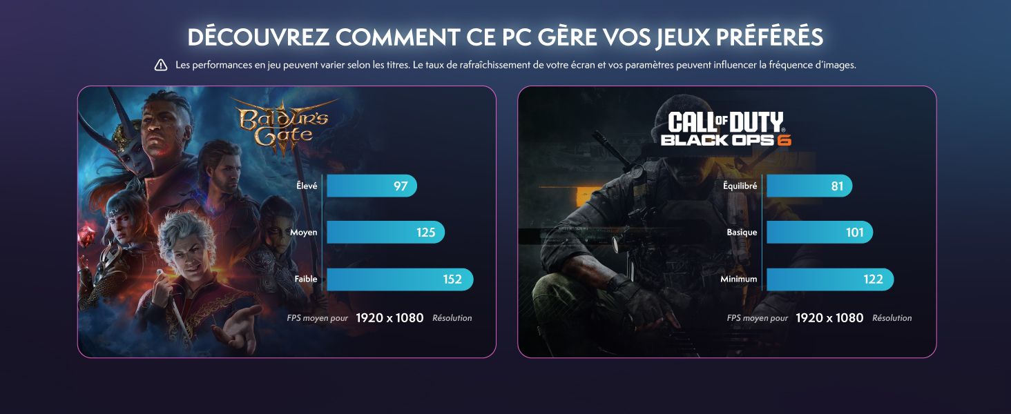 Q: Puis-je utiliser trois écrans avec ce système ?A: Oui, vous pouvez utiliser jusqu?à trois écrans simultanément. La carte graphique prend en charge plusieurs sorties vidéo, ce qui vous permet de profiter facilement d?une configuration gaming étendue ou d?un multitâche optimisé.