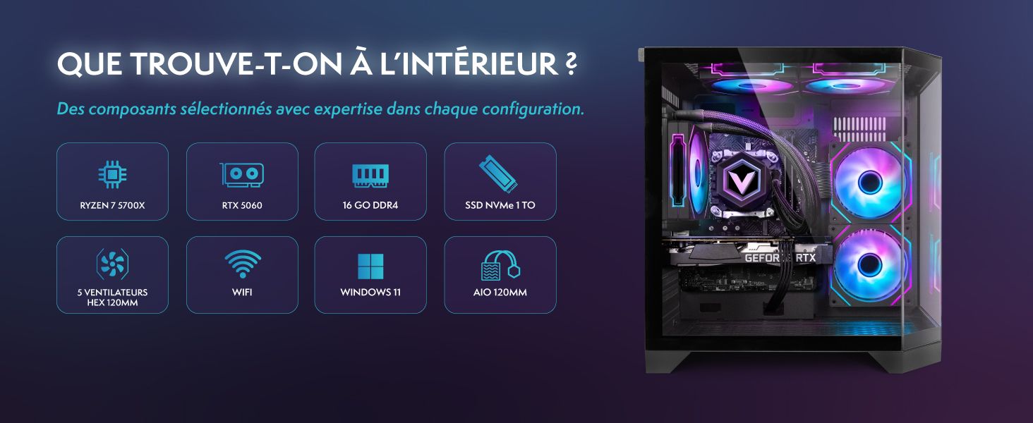 Vibox PC Gamer Complet - Ryzen 7 5700X 4,6 GHz - RTX 5060 8 Go - 16 Go RAM - 1 To SSD - Windows 11 - WiFi - Vibox