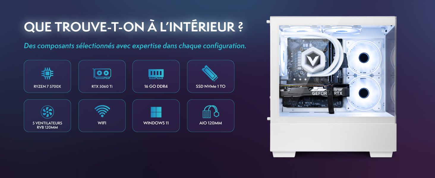 Vibox PC Gamer Complet - Ryzen 7 5700X 4,6 GHz - RTX 5060 Ti 8 Go - 16 Go RAM - 1 To SSD - Windows 11 - WiFi
