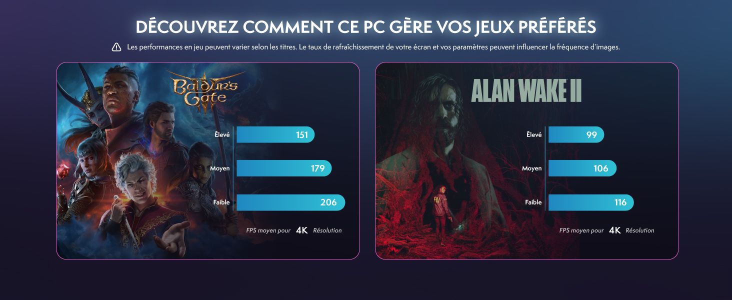 Q: Puis-je utiliser trois écrans avec ce système ?A: Oui, vous pouvez utiliser jusqu?à trois écrans simultanément. La carte graphique prend en charge plusieurs sorties vidéo, ce qui vous permet de profiter facilement d?une configuration gaming étendue ou d?un multitâche optimisé.