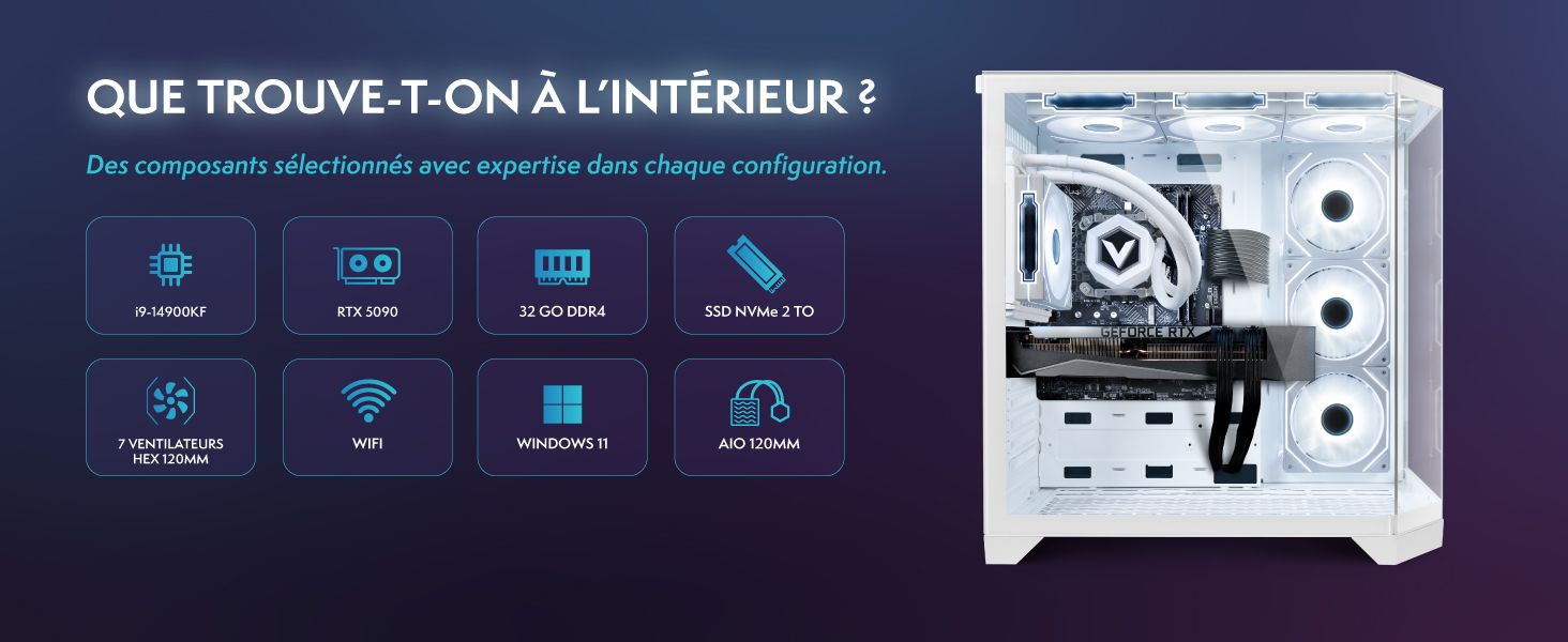 Libérez la bête de course ultime du gaming avec ce système phare, associant le dernier processeur Intel Core i9-14900KF et la carte graphique NVIDIA RTX 5090. Profitez d'une expérience de jeu 4K sans faille, d'un ray tracing en temps réel et d'une puissance multitâche inégalée. Conçue pour les professionnels et les passionnés, cette configuration gère facilement les titres AAA les plus exigeants, le streaming et les tâches créatives, offrant des performances de pointe et une fiabilité à toute épreuve.